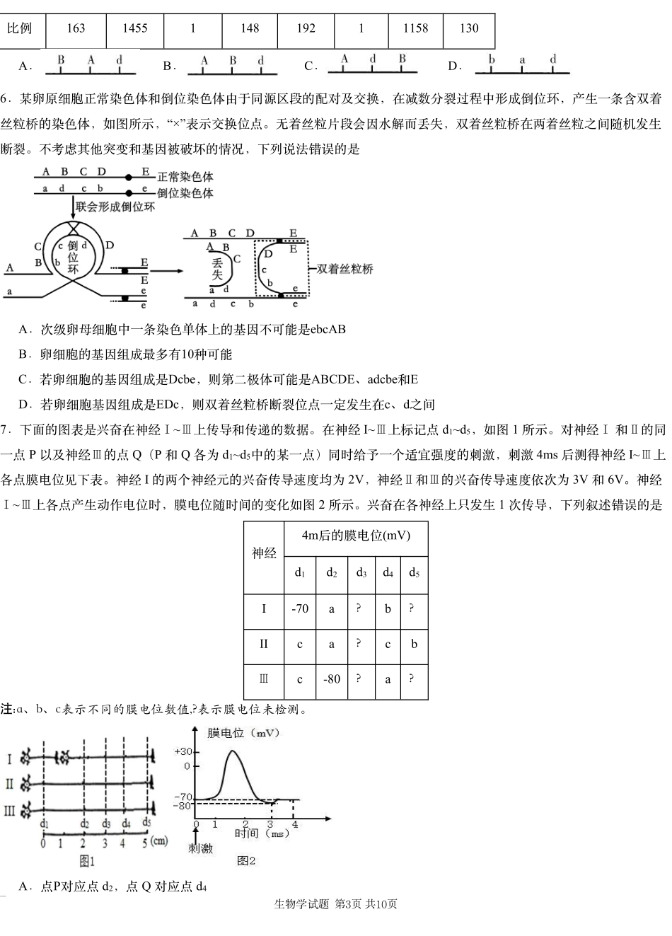2025届湖南省新高考教学教研联盟(长郡二十校联盟)高三第一次预热演练生物学试题.pdf_第3页