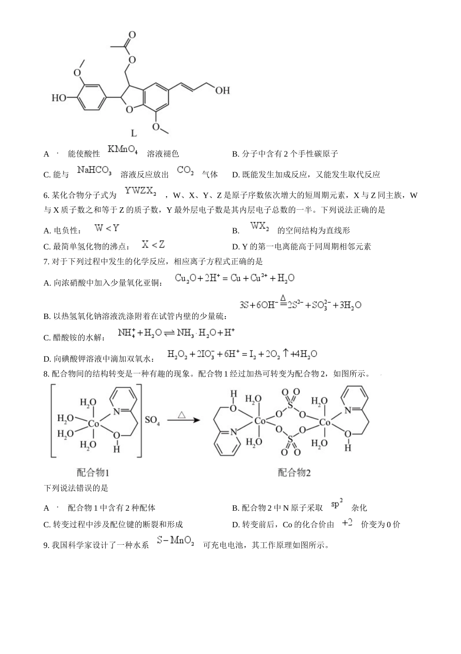 2025年1月河南省普通高等学校招生考试适应性测试(八省联考)化学试题(原卷版).docx_第2页