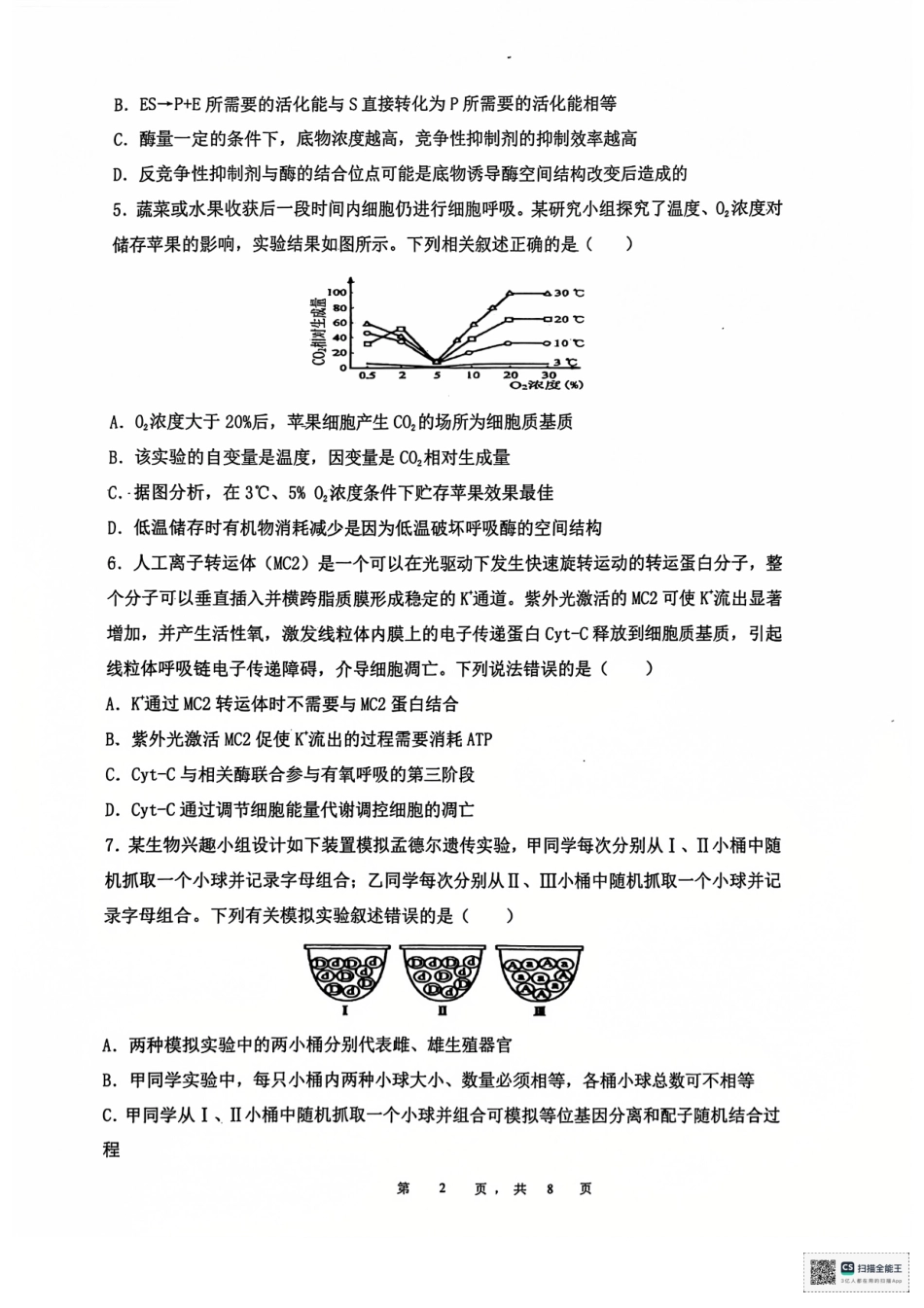 安徽省六安第二中学2024-2025学年高三上学期12月月考生物试题+答案.pdf_第2页