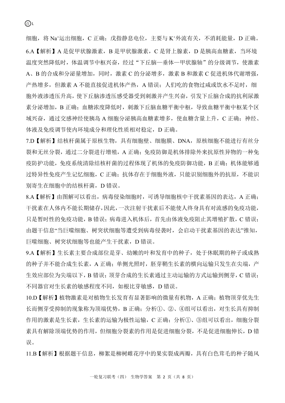 百师联盟2025届高三一轮复习联考(四)生物答案(百L).pdf_第2页