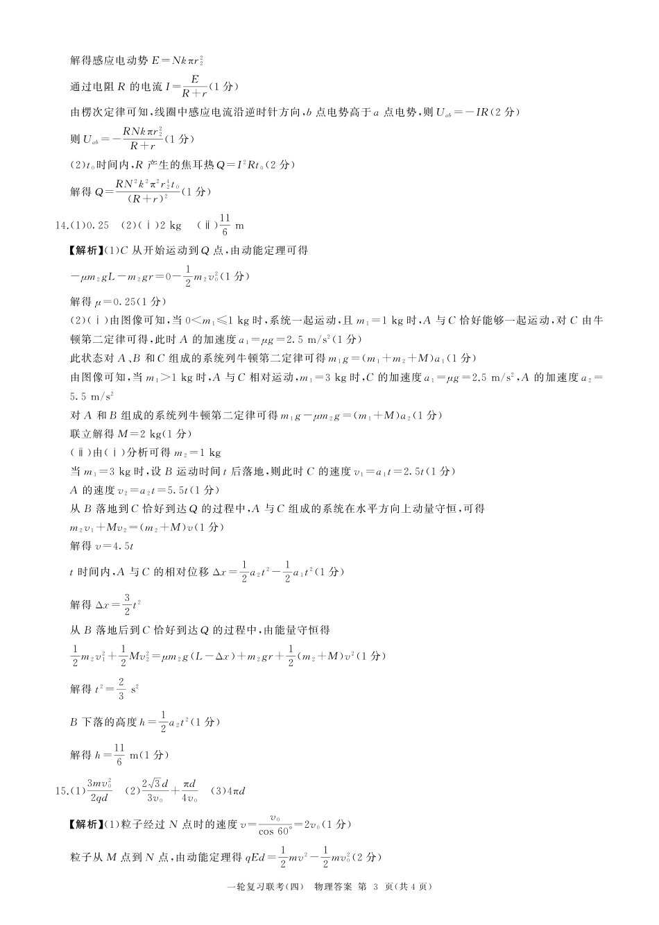 百师联盟2025届高三一轮复习联考(四)物理答案(百H).pdf_第3页