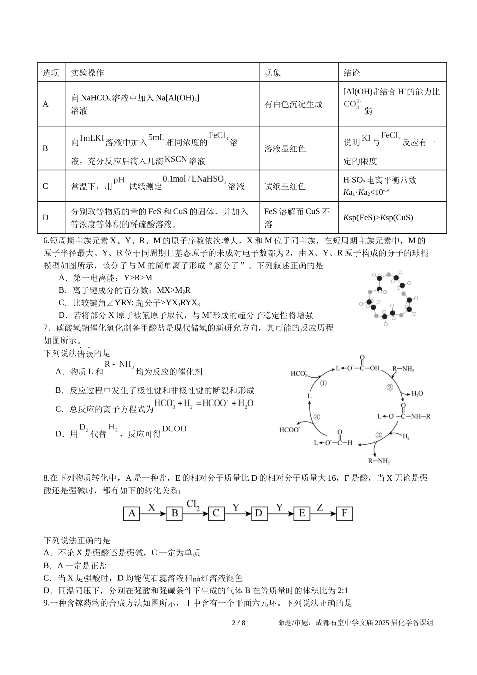 成都石室中学 2025 年高考适应性测试演练模拟考试 化学.docx_第2页