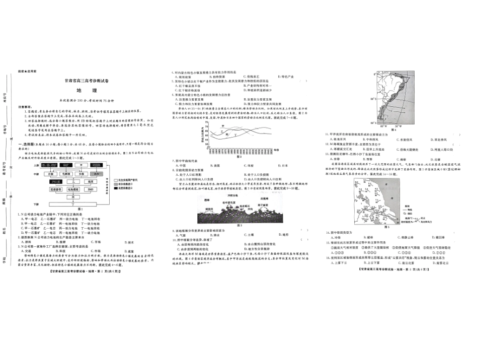 甘肃省2025届高三上学期12月高考诊断地理+答案.pdf_第3页