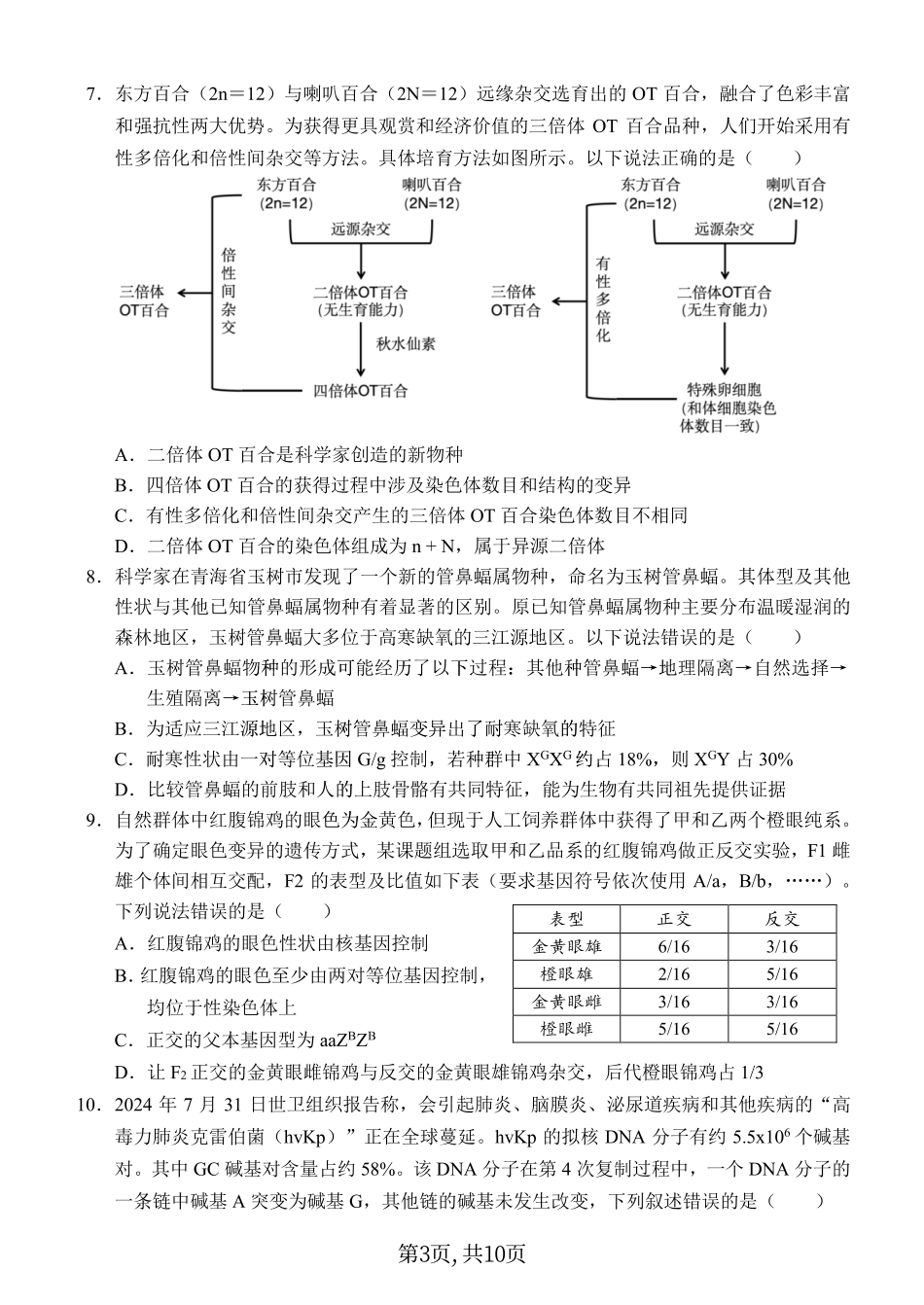 西南大学附中高 2025 届高三上 12月一诊模拟考试生物.pdf_第3页