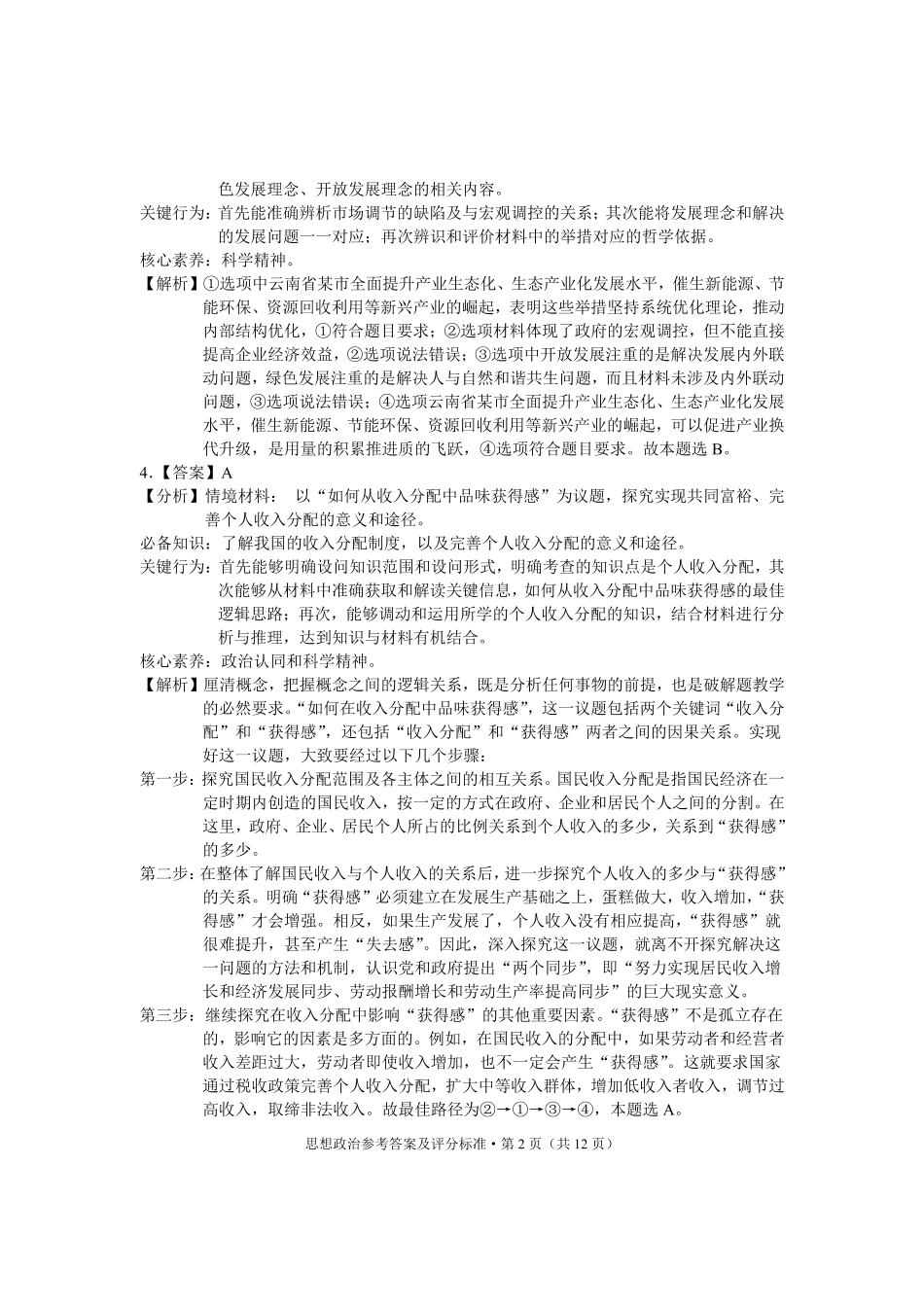 云南省红河州、文山州2025届高中毕业生第一次复习统一检测政治答案.pdf_第2页