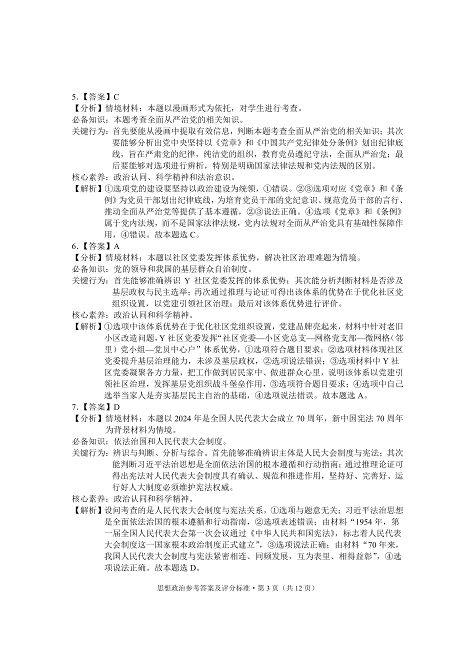 云南省红河州、文山州2025届高中毕业生第一次复习统一检测政治答案.pdf_第3页
