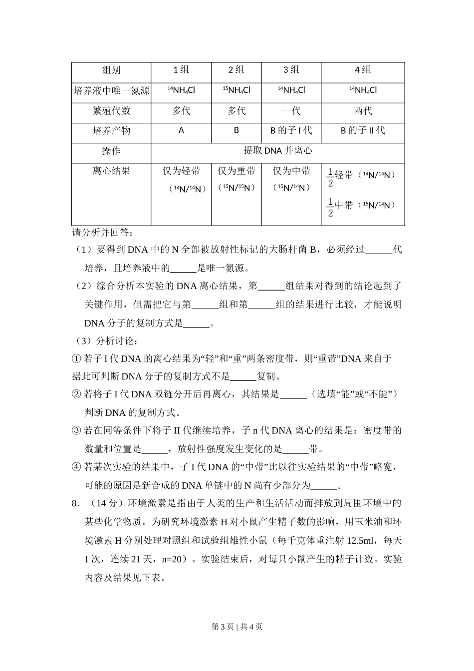 2010年高考生物试卷(北京)(空白卷).doc_第3页