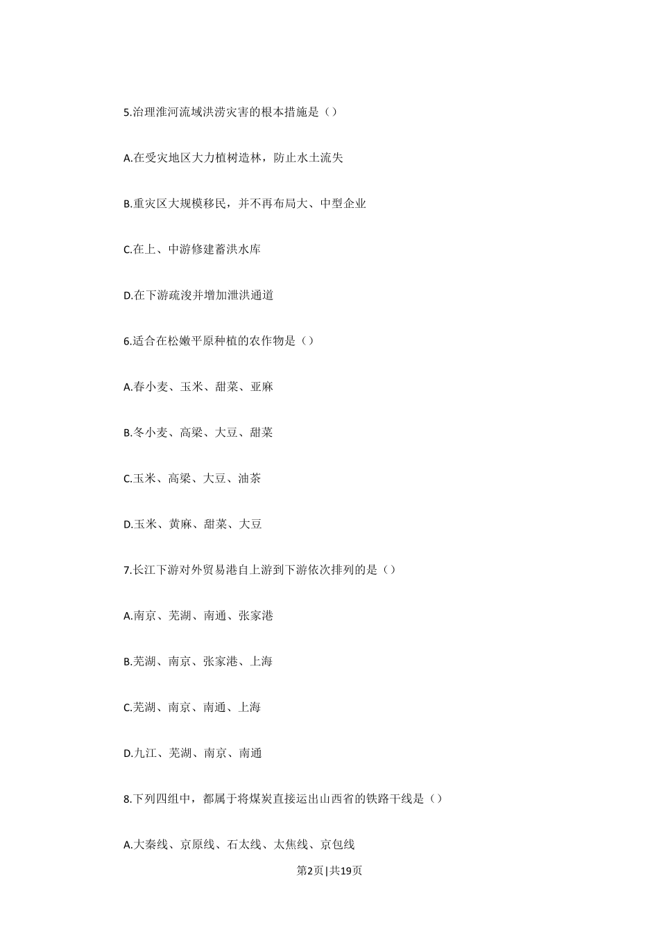 第1页|共19页1992年宁夏高考地理真题及答案一、选择题(共50分)下列各题的四个选项中,有一个或一个以上是正确的,请把正确答案的代号填在题后的括号内。每题选对得2分。多选、少选或错选,该题不得分。1.下列河...