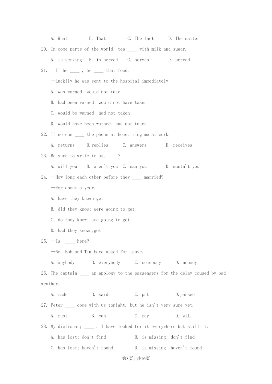 第1页|共16页1993年北京高考英语真题及答案第一卷(三大题,共110分)Ⅰ.单项填空(共40小题,计分40)A)从A、B、C、D中找出其划线部分与所给单词的划线部分读音相同的选项。例:haveA.gaveB.saveC.hatD.made答案...