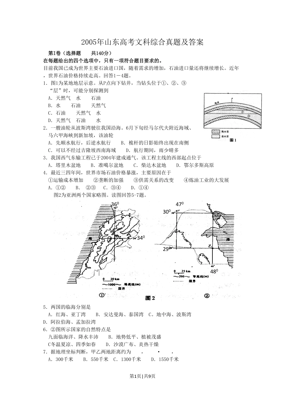 2005年山东高考文科综合真题及答案.pdf_第1页
