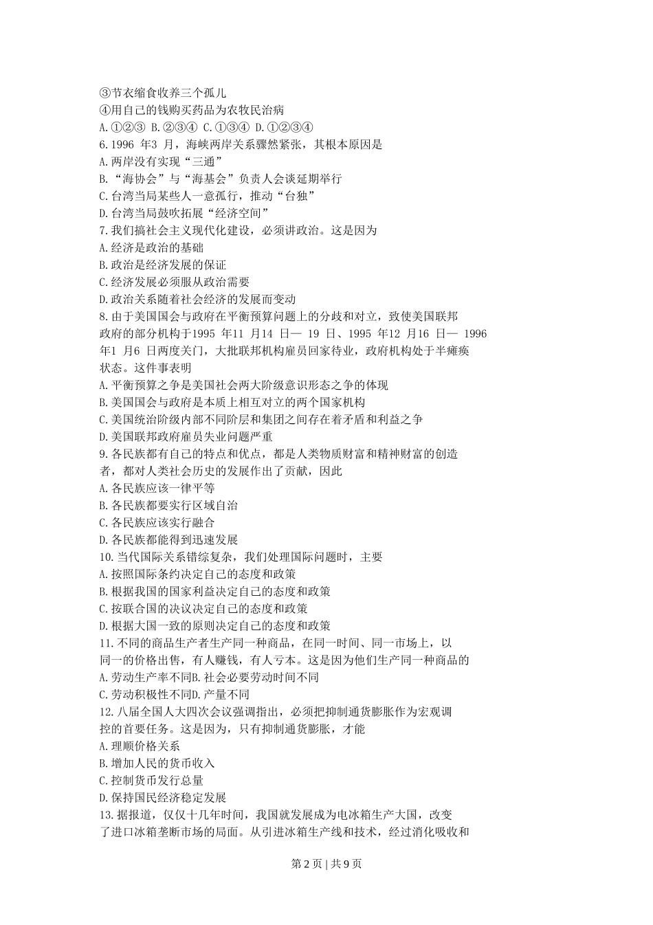 1996年贵州高考政治真题及答案.doc_第2页