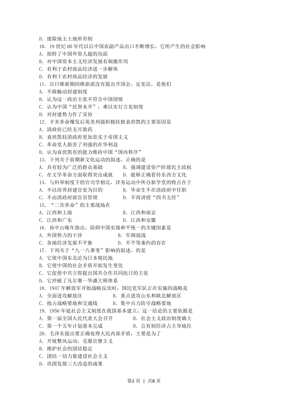 第1页|共8页2000年河南高考历史真题及答案本试卷分第Ⅰ卷(选择题)和第Ⅱ卷(非选择题)两部分,第Ⅰ卷1至6页,第Ⅱ卷7至13页。满分150分。考试时间120分钟。第Ⅰ卷(选择题,共74分)注意事项:1.答第Ⅰ卷前,...