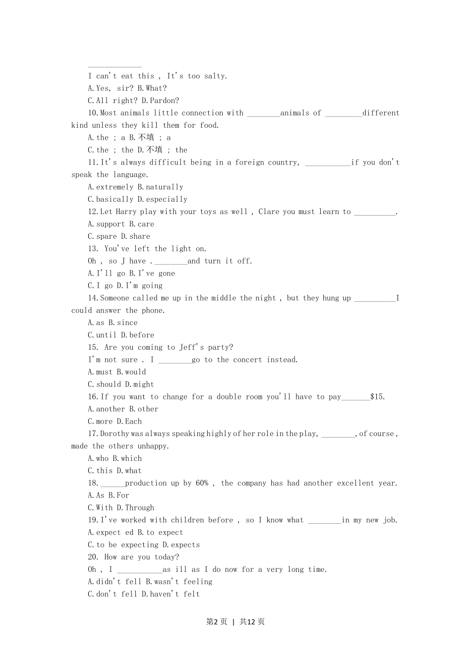 2000年黑龙江高考英语真题及答案.pdf_第2页