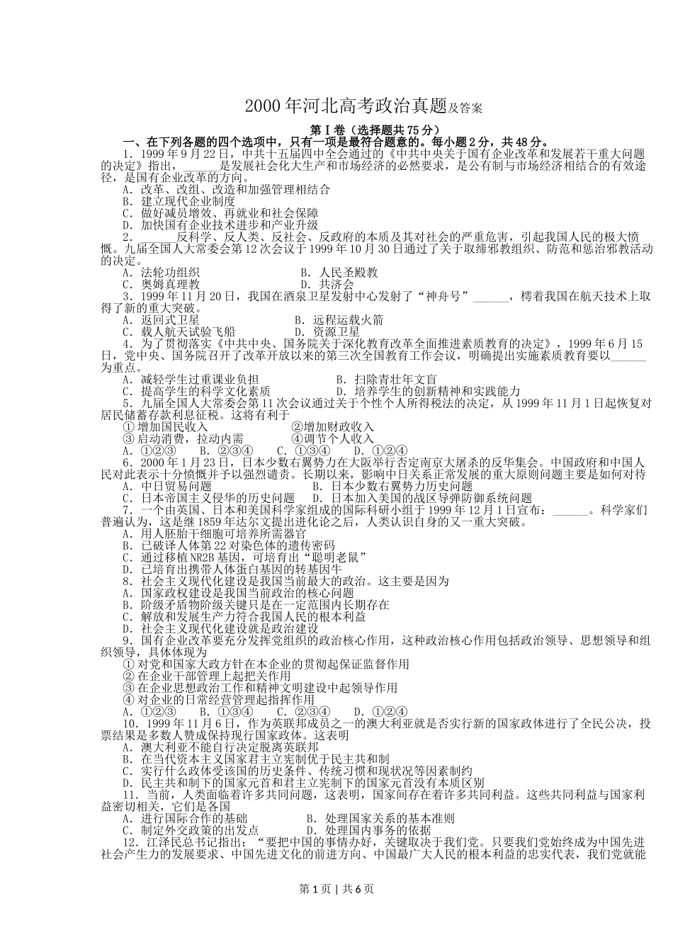 2000年河北高考政治真题及答案.doc_第1页