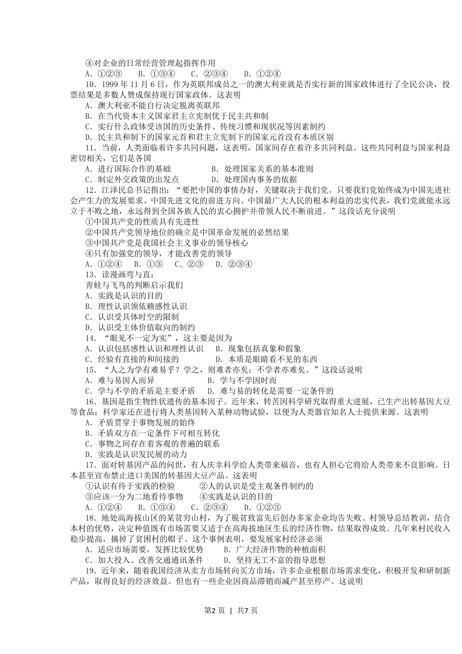 2000年内蒙古高考政治真题及答案.pdf_第2页