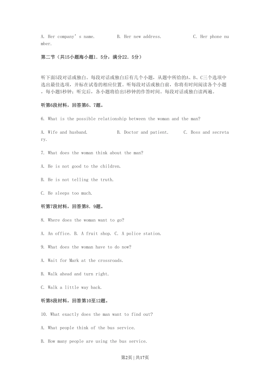 第1页|共17页2003年贵州高考英语真题及答案本试卷分第I卷(选择题)和第II卷(非选择题)两部分。共150分。考试时间120分钟。第I卷(选择题共115分)第一部分:听力(共两节,满分30分)第一节(共5小题;每小题1...