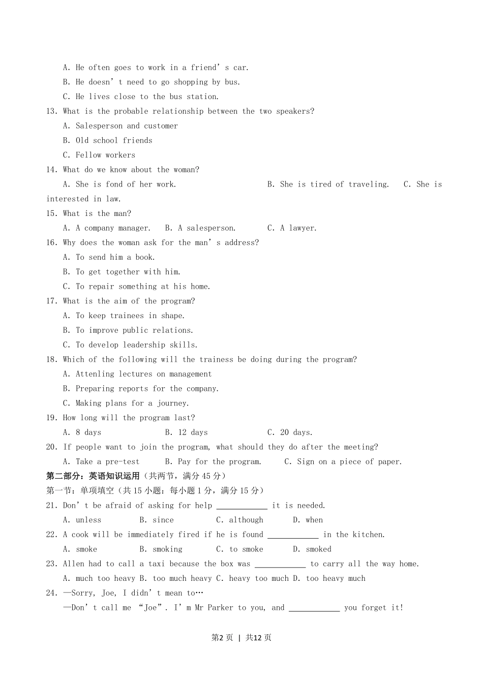 第1页|共12页2003年云南高考英语真题及答案第一部分:听力(共两节,满分30分)第一节(共5小题:每小题1.5分,满分7.5分)1.Whatisthemangoingtodo?A.Openthewindow.B.Findanotherroom.C.Gooutwiththewoman....