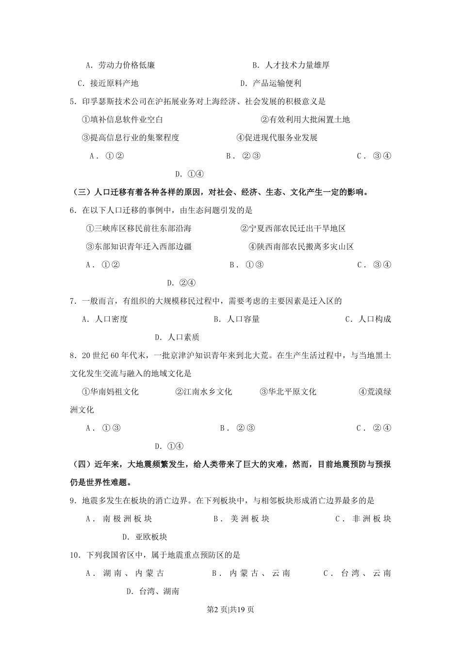 2011年高考地理试卷(上海)(解析卷).pdf_第2页