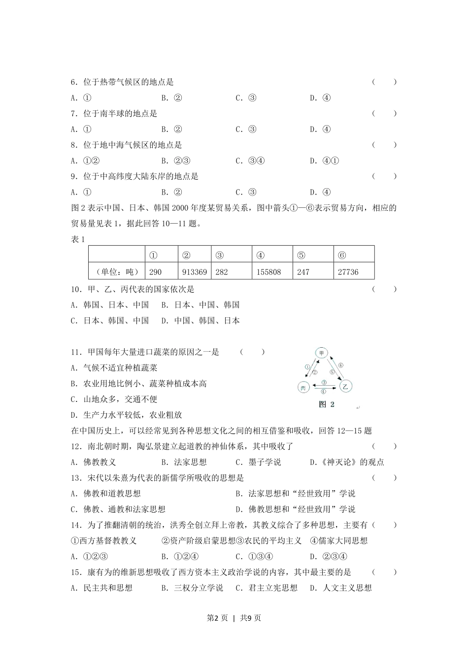 2005年西藏高考文科综合真题及答案(1).pdf_第2页