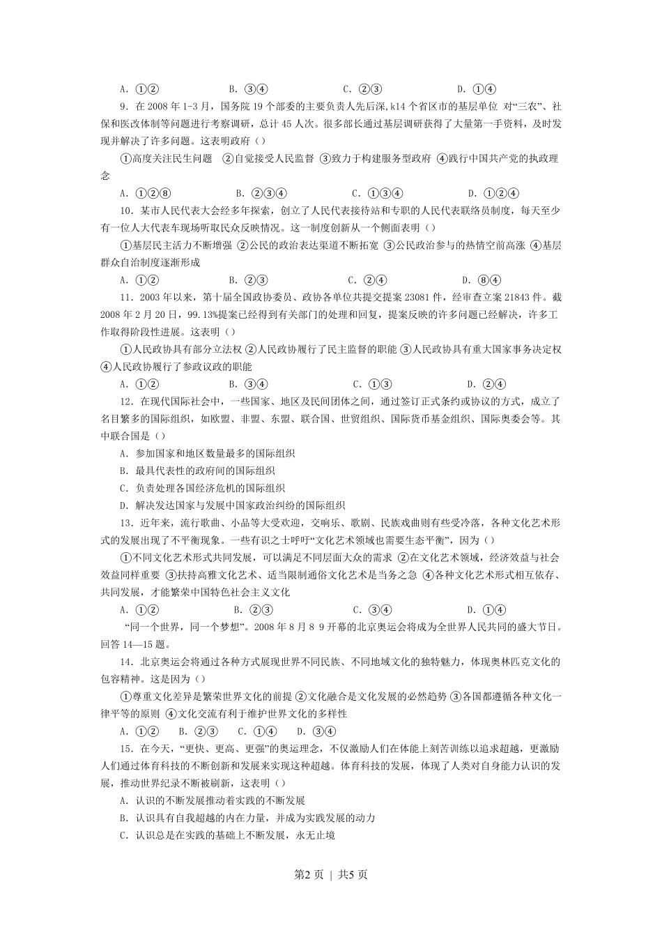 2008年高考政治试卷(海南)(空白卷).pdf_第2页