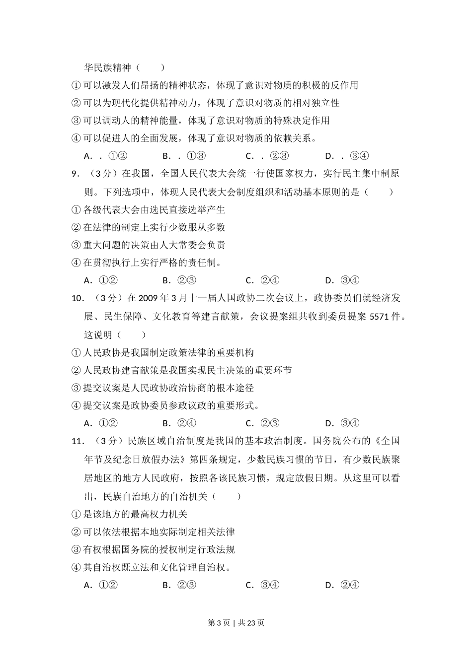 2009年高考政治试卷(全国Ⅱ卷)(解析卷).doc_第3页