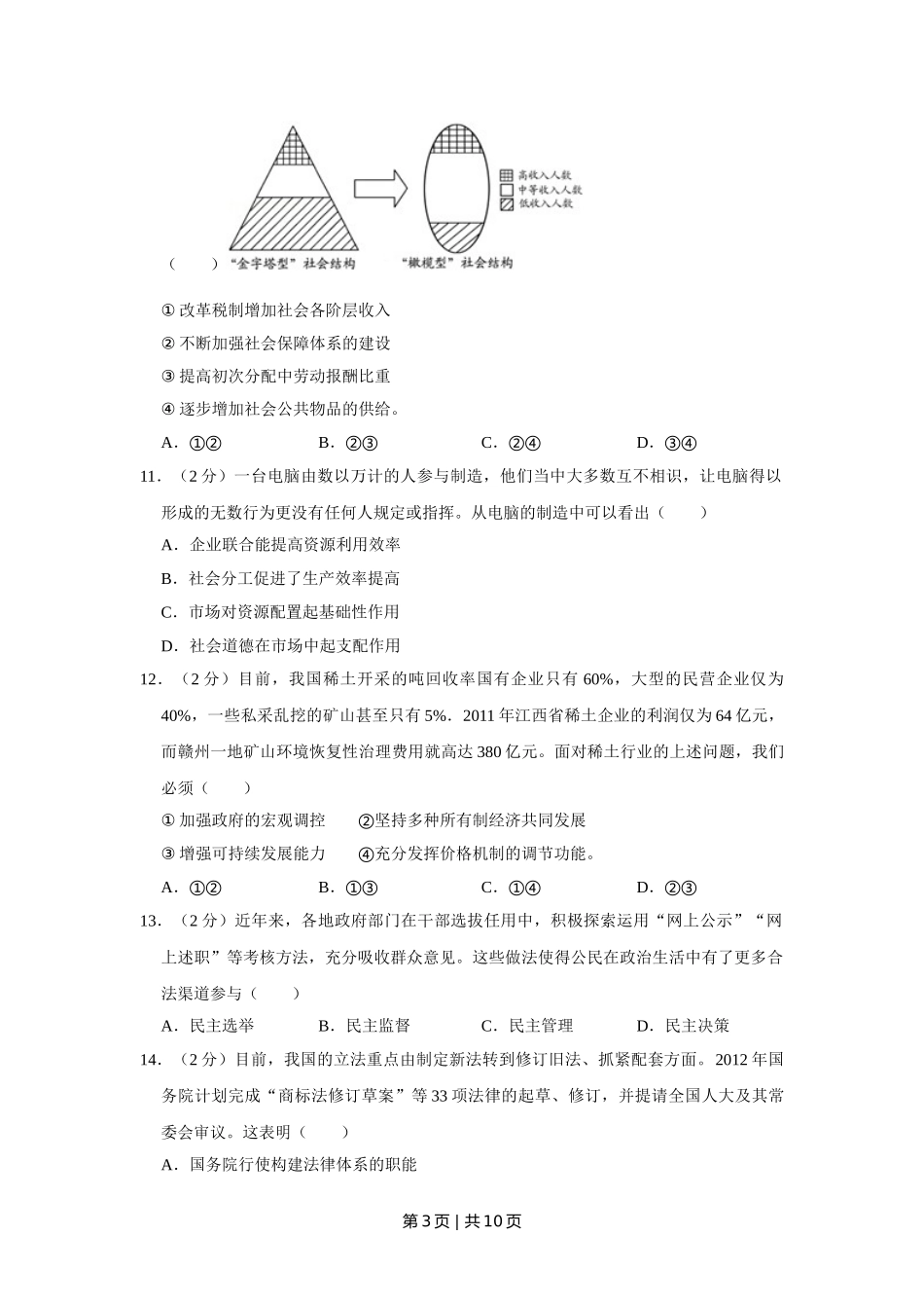 2012年高考政治试卷(江苏)(空白卷).doc_第3页
