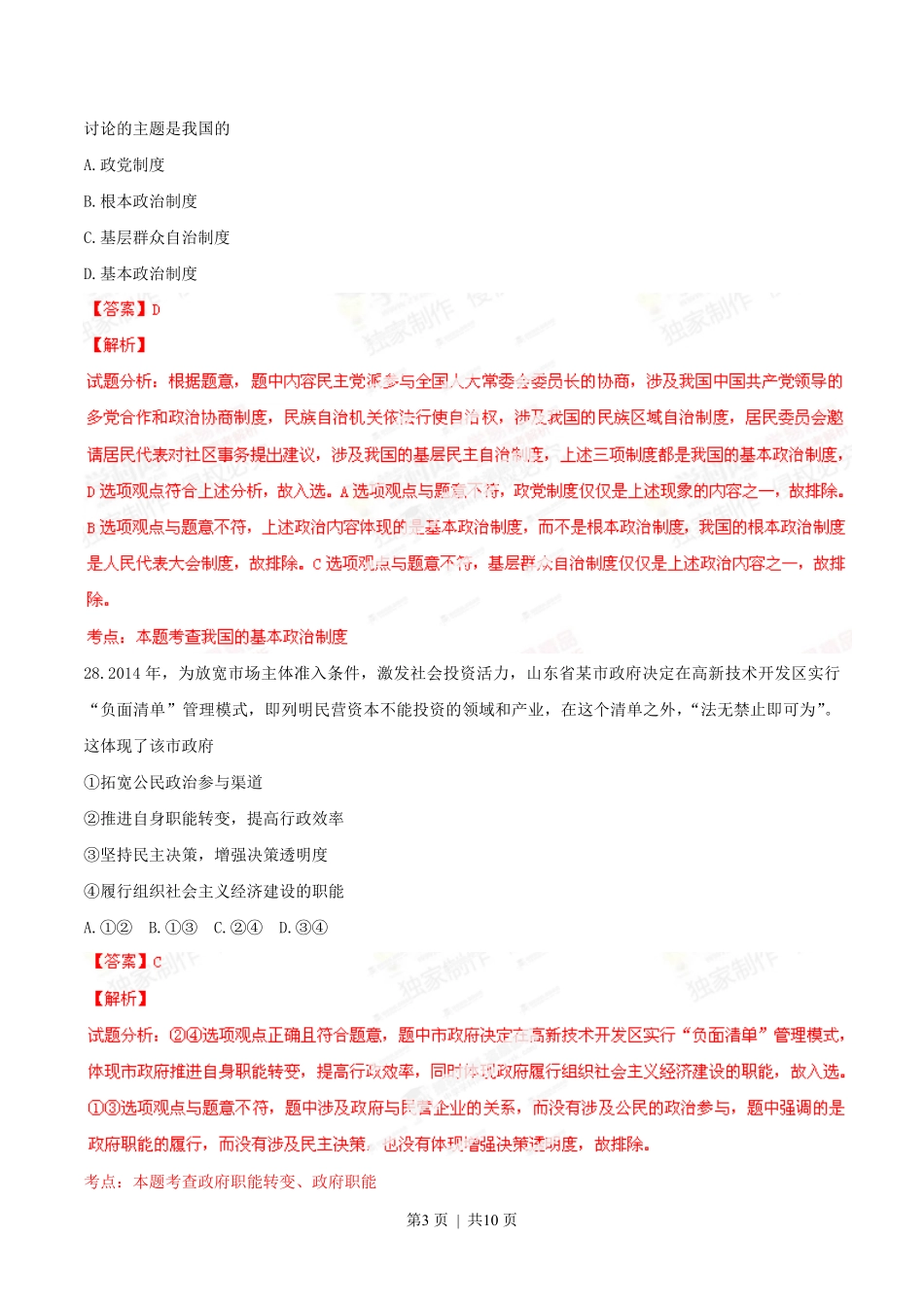 2014年高考政治试卷(山东)(解析卷).pdf_第3页