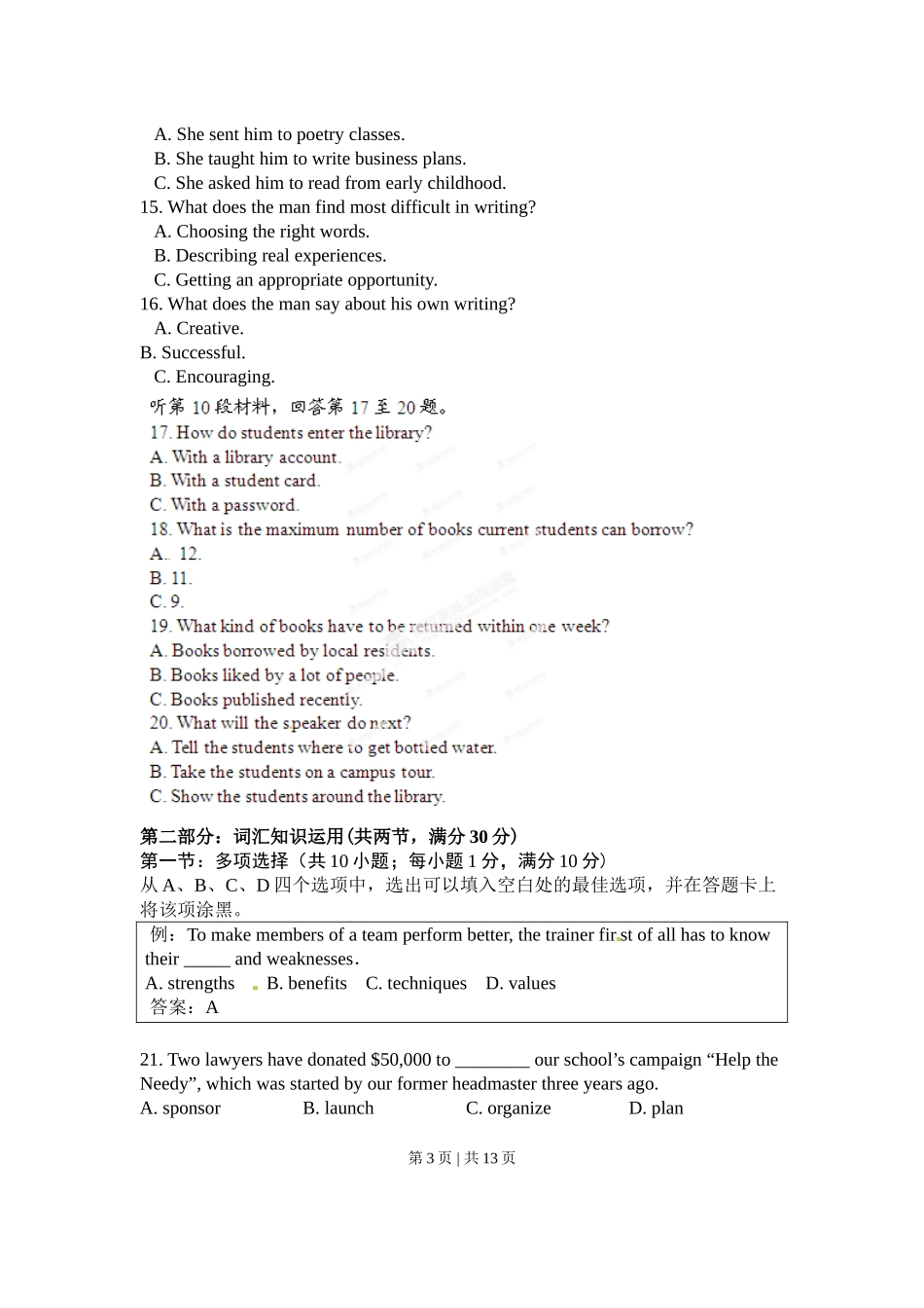 2012年高考英语试卷(湖北)(空白卷).doc_第3页