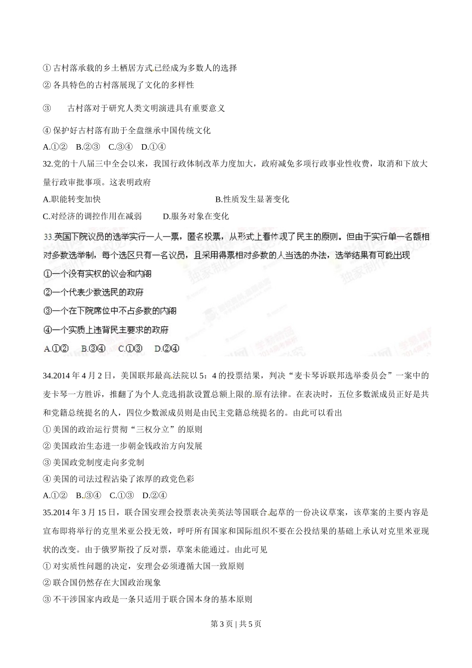 2014年高考政治试卷(浙江)(空白卷).doc_第2页