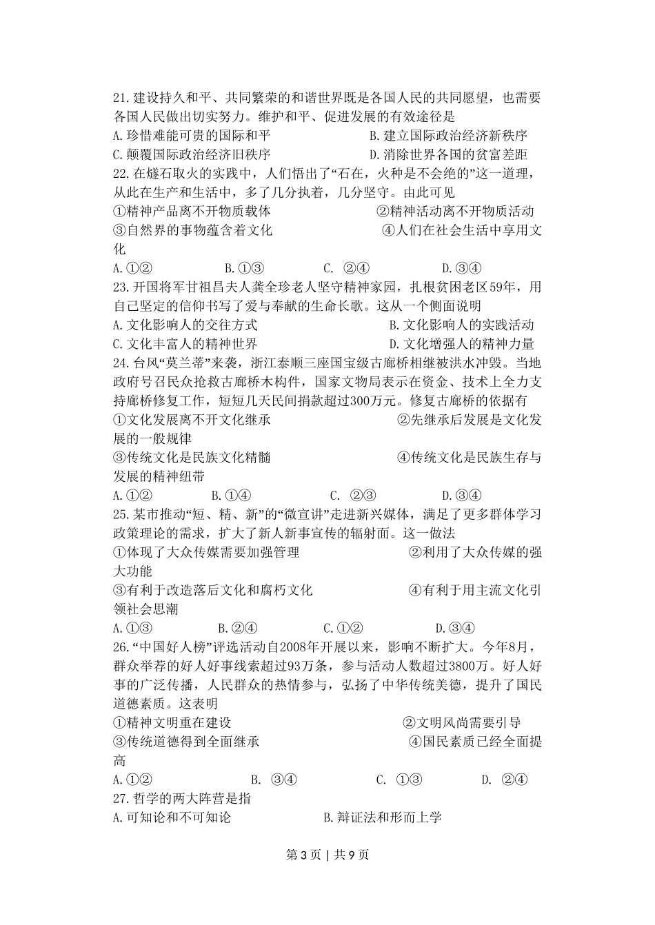 2016年高考政治试卷(浙江)(10月)(空白卷).doc_第3页