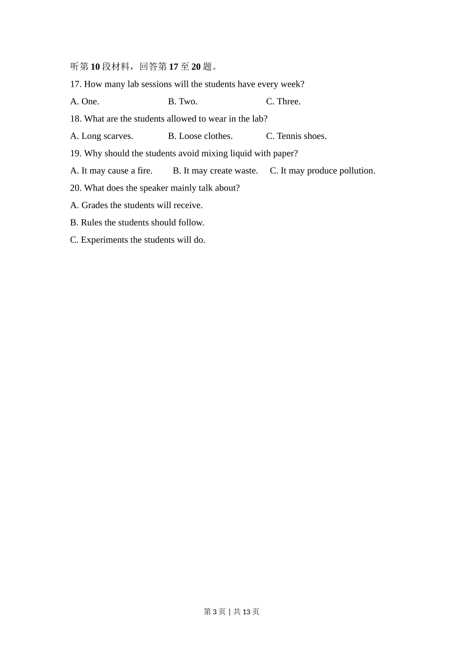 2017年高考英语试卷(新课标Ⅲ卷)(空白卷).doc_第3页