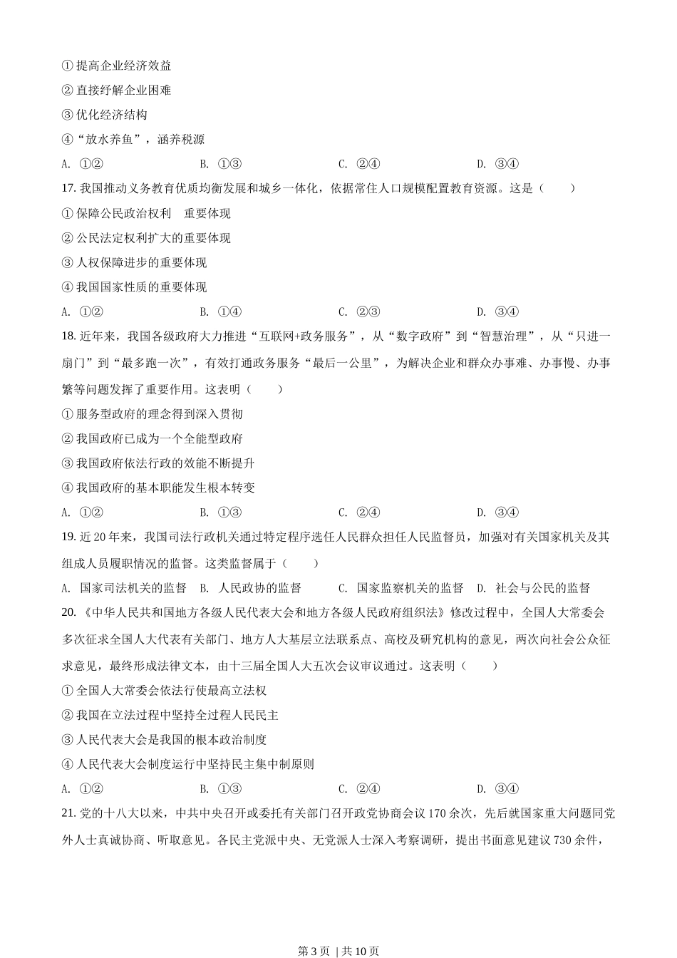 2022年高考政治试卷(浙江)(6月)(空白卷).docx_第3页