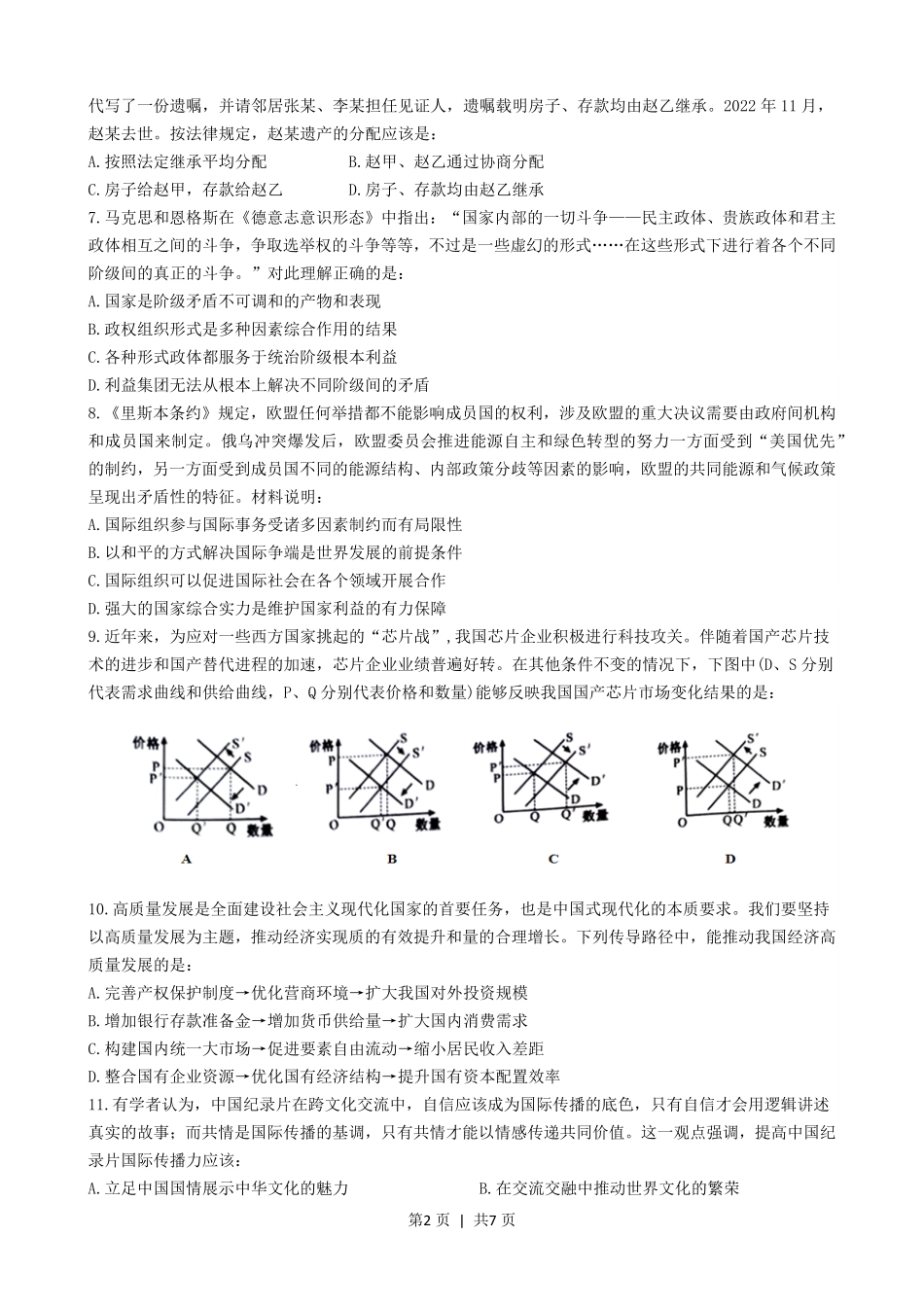 2023年高考政治试卷(江苏)(空白卷).pdf_第2页