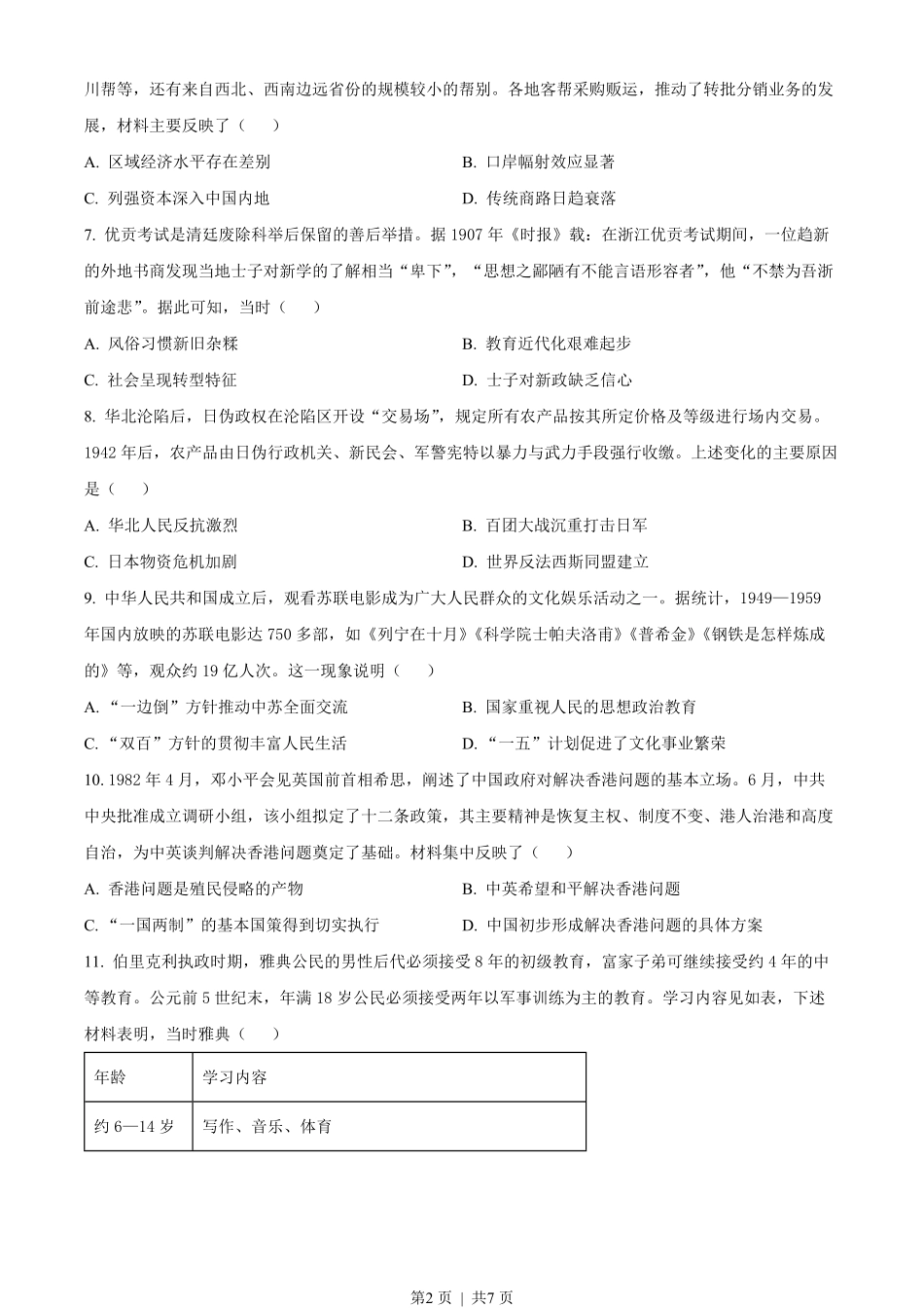 2022年高考历史试卷(河北)(空白卷).pdf_第2页