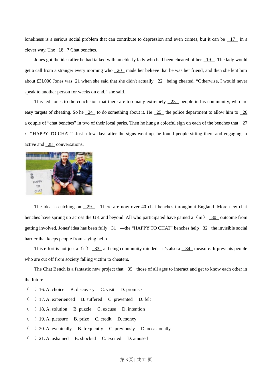 2020年高考英语试卷(天津)(第二次)(空白卷).doc_第3页