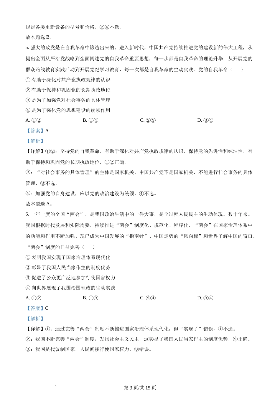 2024年高考政治试卷(安徽)(解析卷).docx_第3页