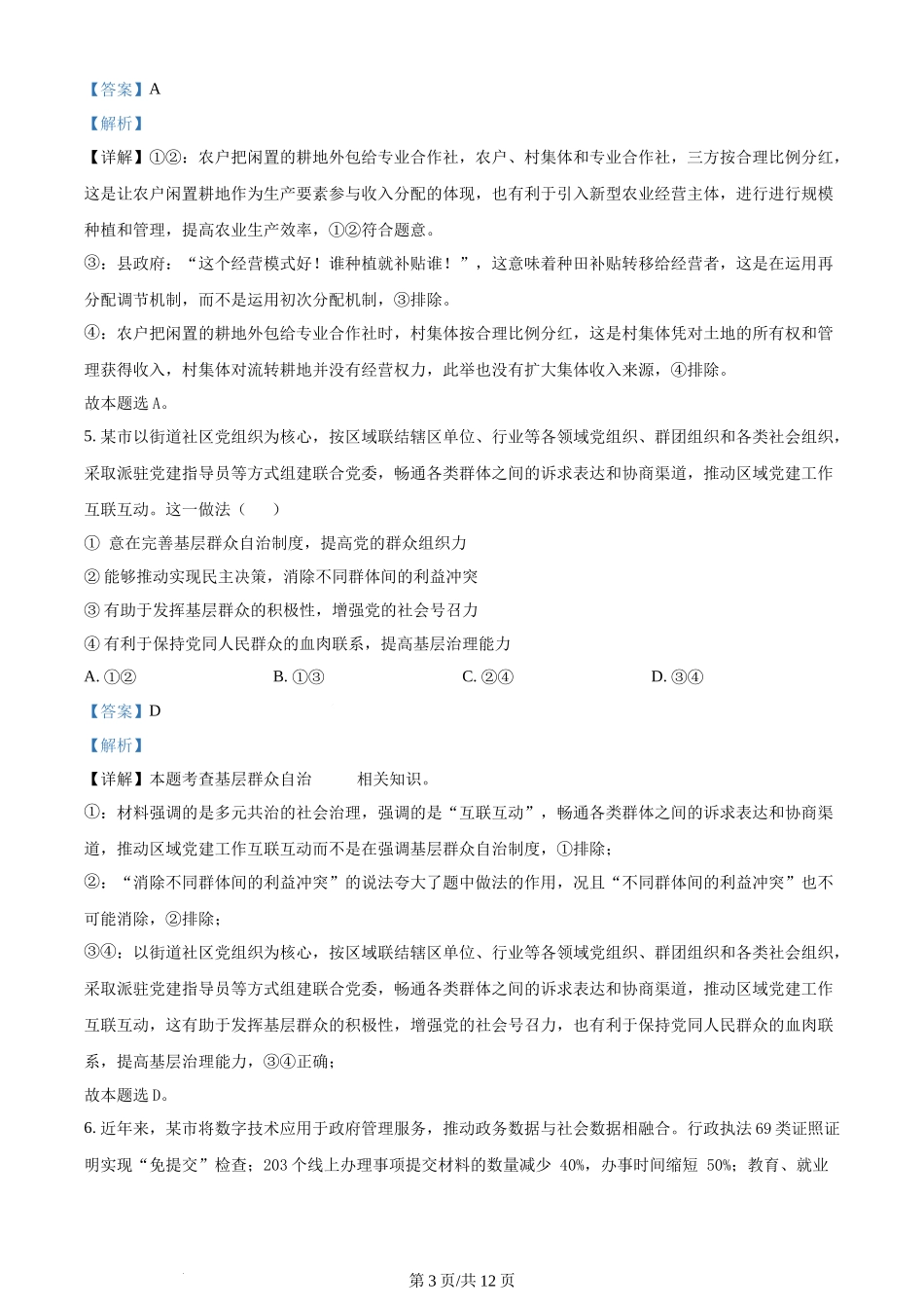 2024年高考政治试卷(新课标)(解析卷).docx_第3页