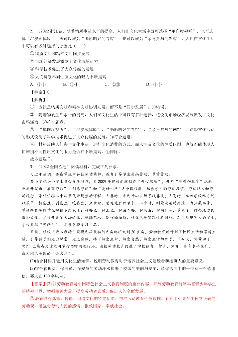 专题12 发展中国特色社会主义文化-五年(2019-2023)高考政治真题分项汇编(解析版).docx_第2页