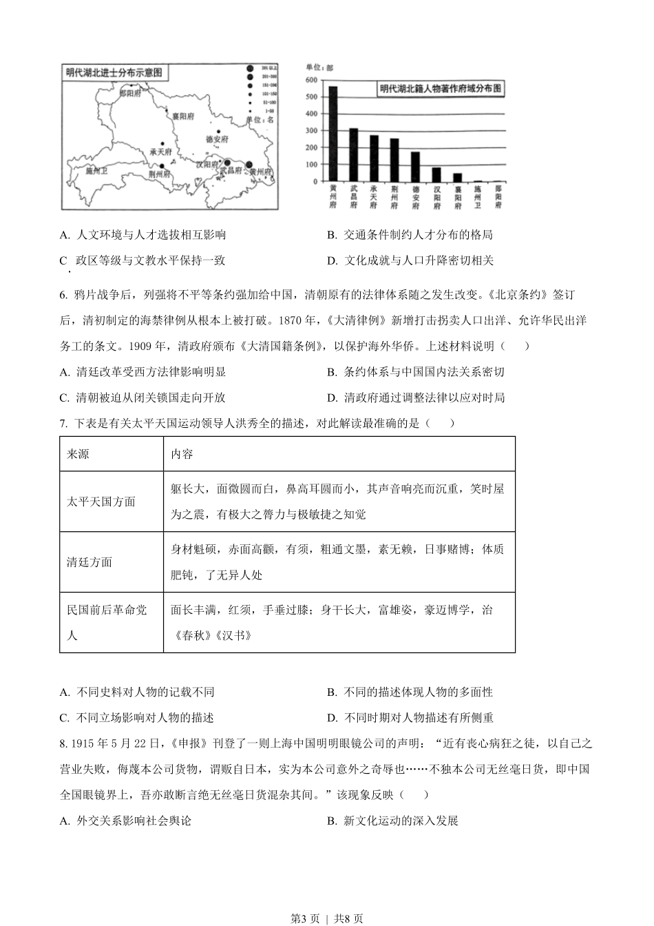 2023年高考历史试卷(湖北)(空白卷).pdf_第3页