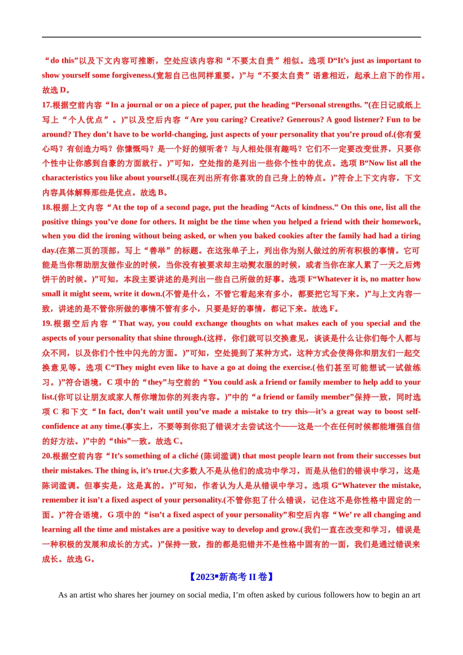 专题14  阅读理解七选五-五年(2019-2023)高考英语真题分项汇编(解析版).docx_第2页