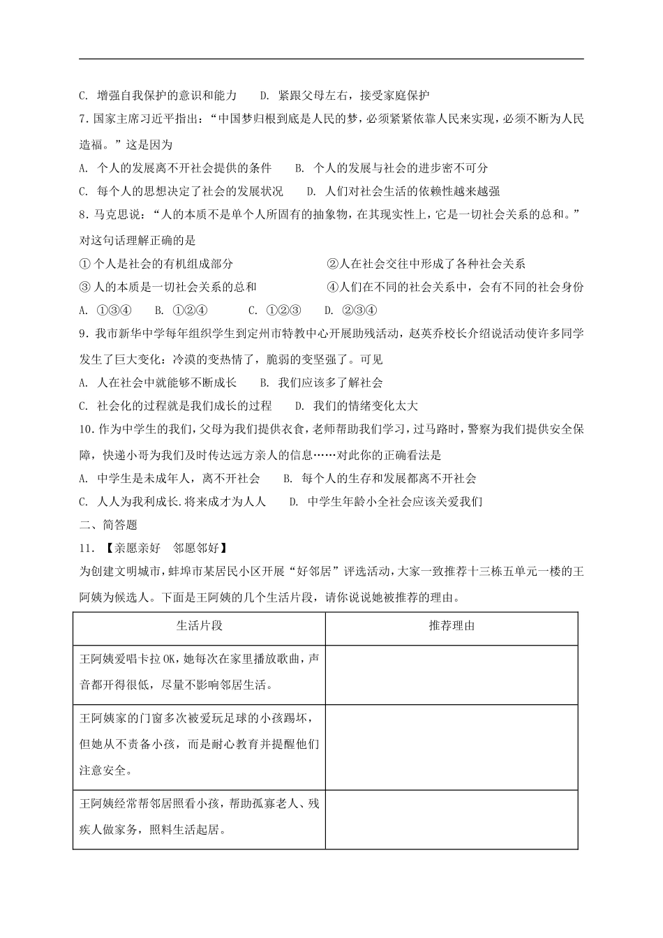 八年级道德与法治上册第一单元走进社会生活第一课丰富的社会生活第1框我与社会课时训练.doc_第2页