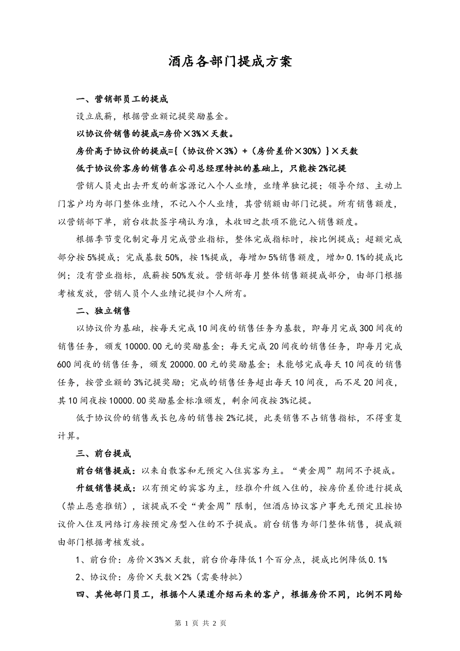 07-【实例】酒店各部门提成方案.docx_第2页