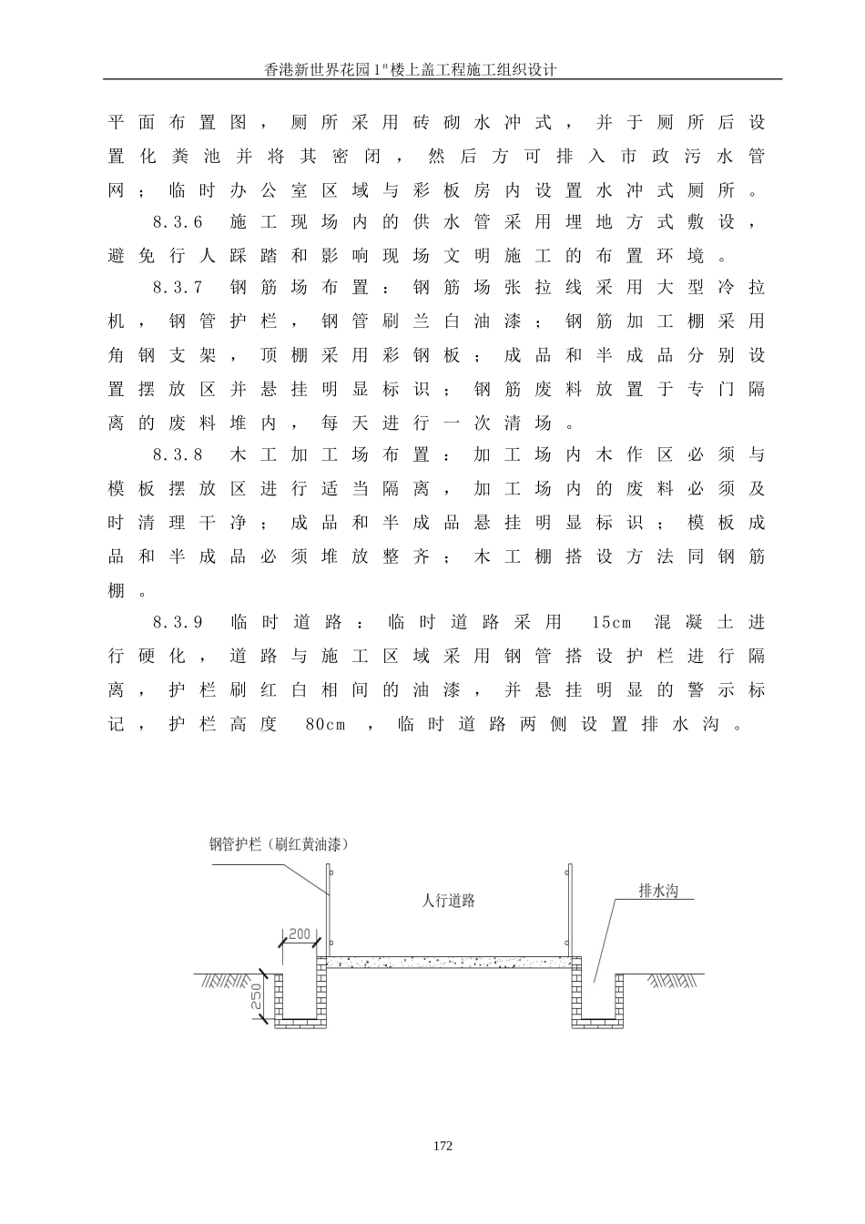 香港新世界花园1#楼上盖工程施工组织设计第八章现场文明施工和环境保护措施文明施工是现代化施工的一个重要标志,是施工企业一项基础性的管理工作。坚持文明施工意义重大。文明礼貌施工是施工企业管理水平的综合...