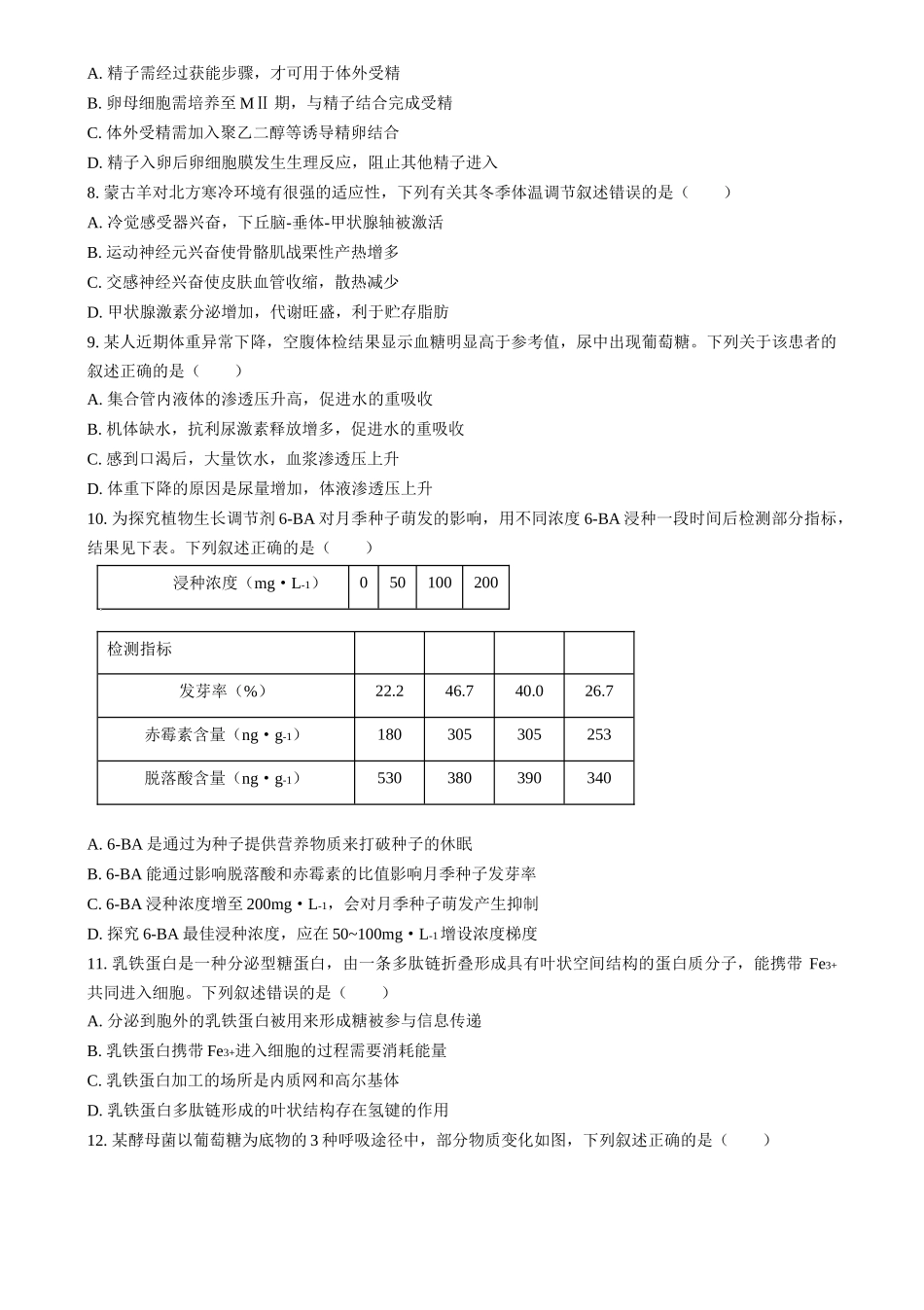 2025年1月内蒙古普通高等学校招生考试适应性测试(八省联考)生物(内蒙古)(原卷版).docx_第2页