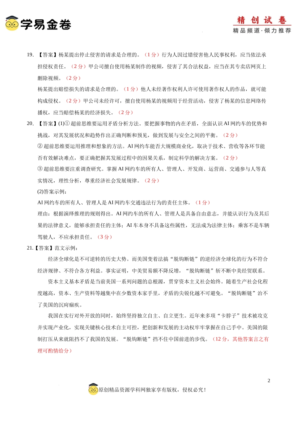 八省2025届高三“八省联考”考前猜想卷政治02(16+5模式)答案及.docx_第2页