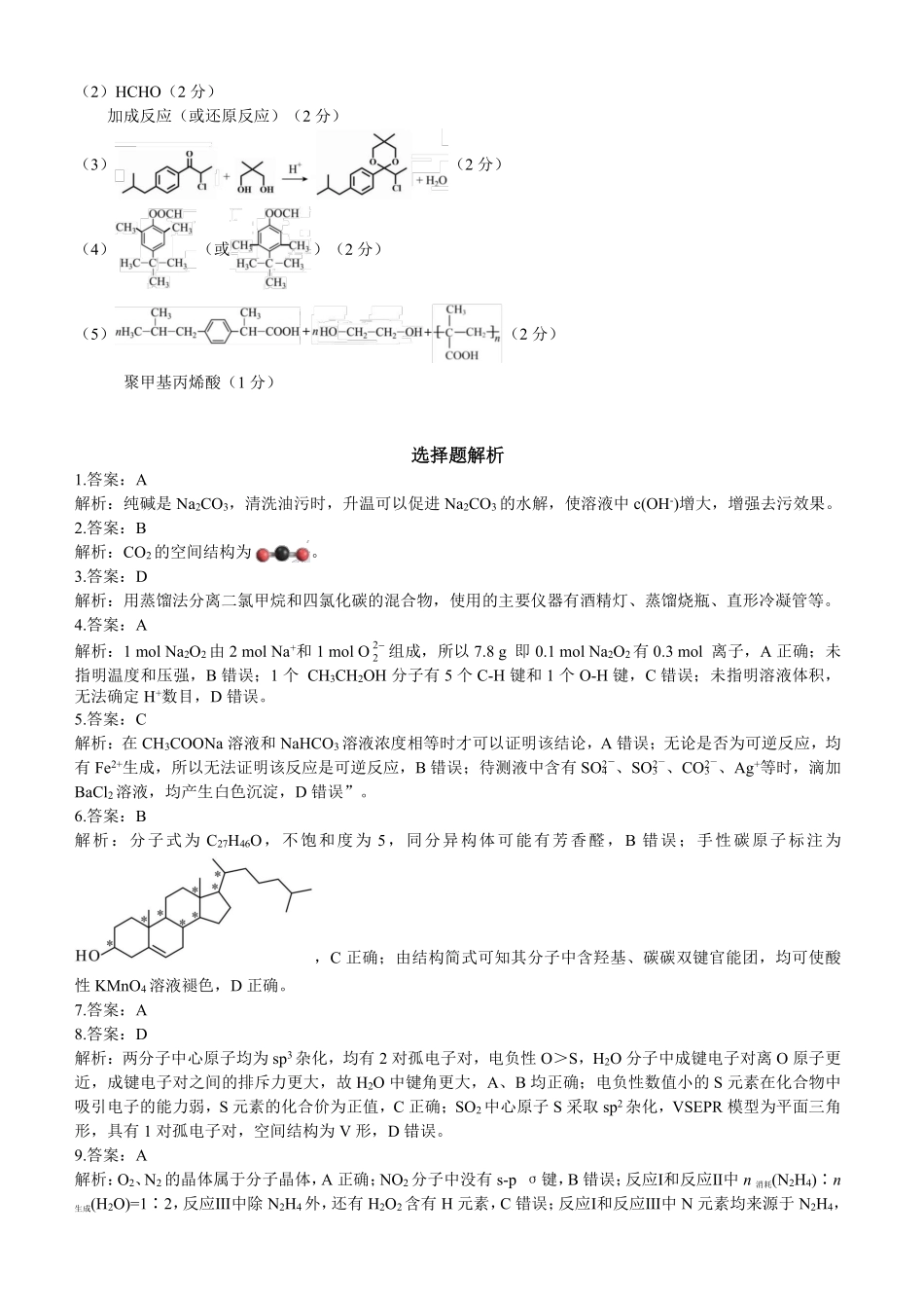 湖北省部分市州2025年元月高三期末联考 化学答案.pdf_第2页