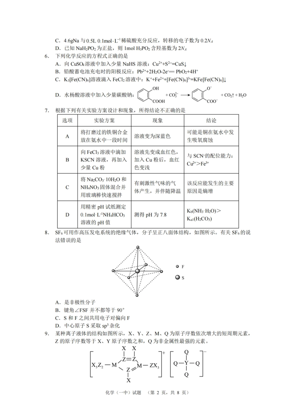 湖南省长沙市第一中学2025届高三上学期阶段性检测(五)化学.pdf_第2页