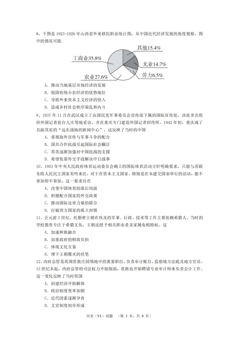 湖南省长沙市雅礼中学2024-2025学年高三上学期1月综合自主测试历史.pdf_第3页