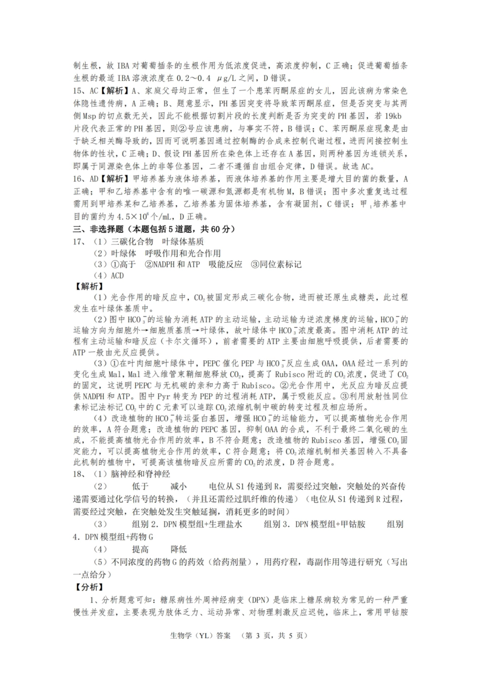 湖南省长沙市雅礼中学2024-2025学年高三上学期1月综合自主测试生物答案(YL).pdf_第3页