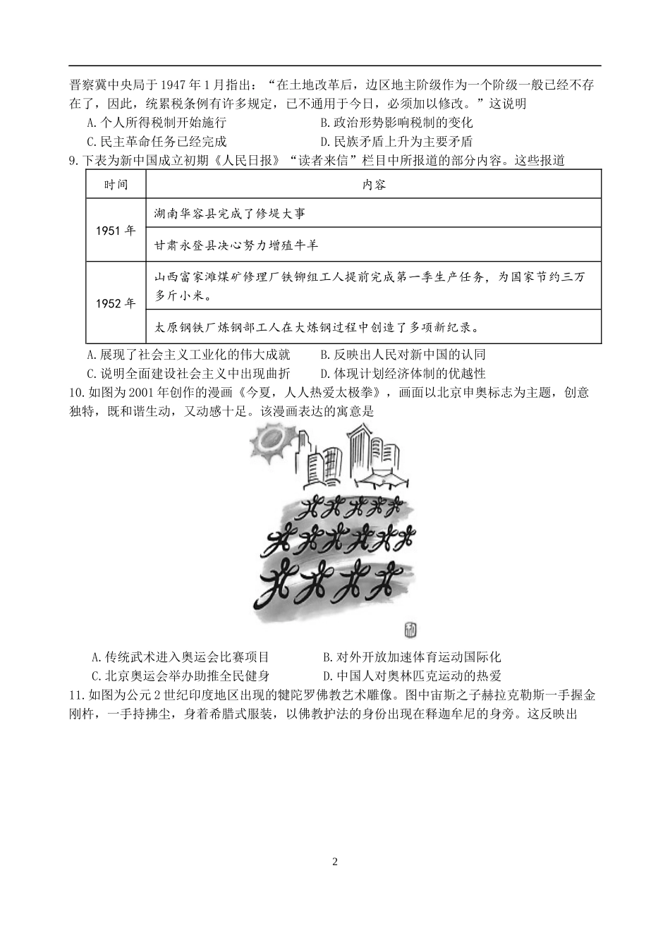 江苏省扬州中学2025届高三上学期1月月考历史+答案.docx_第2页